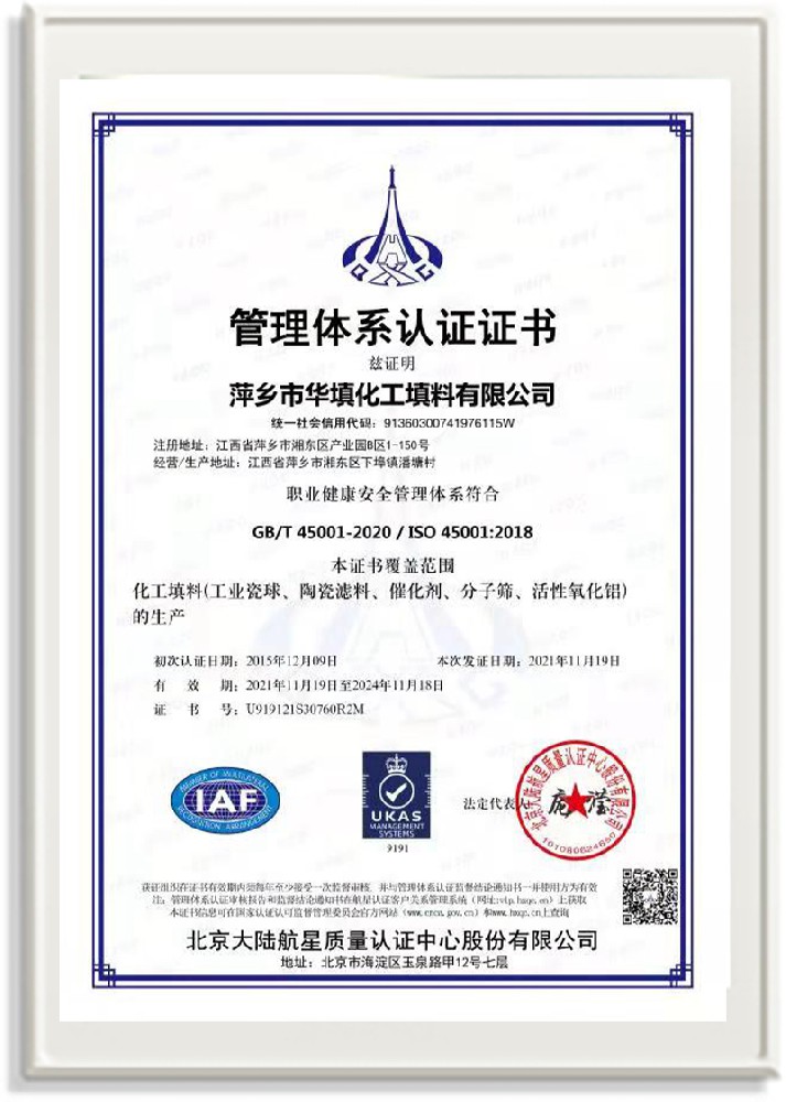萍鄉(xiāng)市華填化工填料有限公司,位于320國道、109國道、浙贛鐵路、昌金高速公路貫穿其中,交通便利,是江西西部一顆燦爛明珠,創(chuàng)建于20世紀70年代初期,是中國石油天然氣股份有限公司“能源一號網(wǎng)”會員企業(yè)、中國石化物資采購電子商務(wù)網(wǎng)絡(luò)和中國海洋石油總公司采辦業(yè)務(wù)系統(tǒng)成員單位,是上海大學(xué)江西材料基因組工程產(chǎn)業(yè)研究院工業(yè)陶瓷產(chǎn)業(yè)創(chuàng)新聯(lián)盟基地,且通過ISO9001:2015質(zhì)量管理體系、ISO14001:2015環(huán)境管理體系、ISO45001:2018職業(yè)健康安全管理體系認證的化工填料生產(chǎn)企業(yè)。公司擁有陶瓷、塑料、金屬填料、催化劑、活性氧化鋁、分子篩等產(chǎn)品生產(chǎn)線,現(xiàn)有固定資產(chǎn)3616萬元,占地面積3.8萬平方米。公司具有悠久的生產(chǎn)歷史、雄厚的技術(shù)力量和先進的生產(chǎn)工藝設(shè)備,可生產(chǎn)工業(yè)瓷球(支撐劑)、陶瓷、金屬、塑料質(zhì)的規(guī)整、散堆化工填料及分子篩、催化劑、生化濾料、活性氧化鋁、石化助劑、活性炭、環(huán)保材料、耐火材料等系列的200多種規(guī)格型號產(chǎn)品。